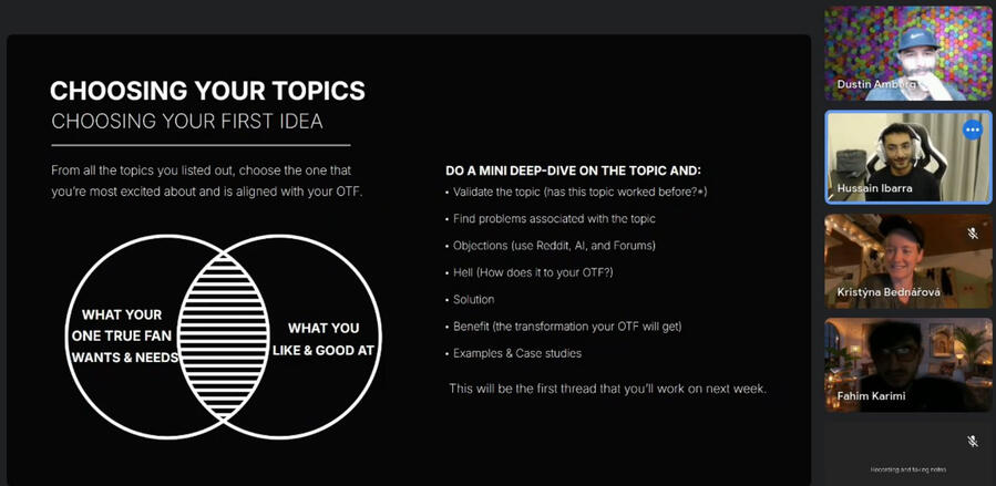 Meet like-minded creators who are on a similar path with you (because you move faster and make more progress as a group) and gain 1:1 access to Hussain.