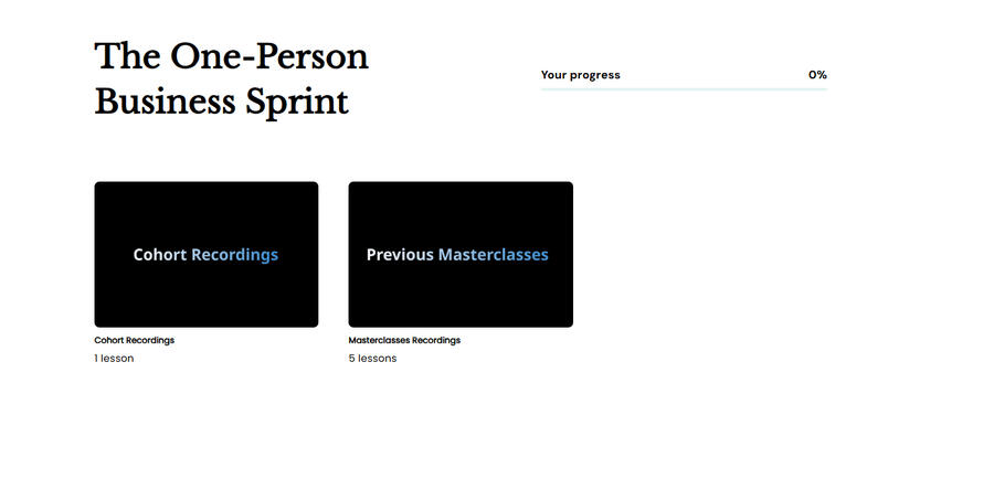 If you want those types of results, then the One-Person Business 6-week Sprint is perfect for you.Here's everything you're getting: