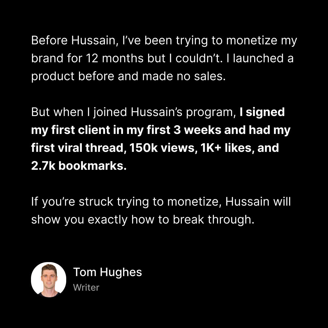 Tom, signed his first client and had his first viral thread getting 150,000 views in just his first 3 weeks.